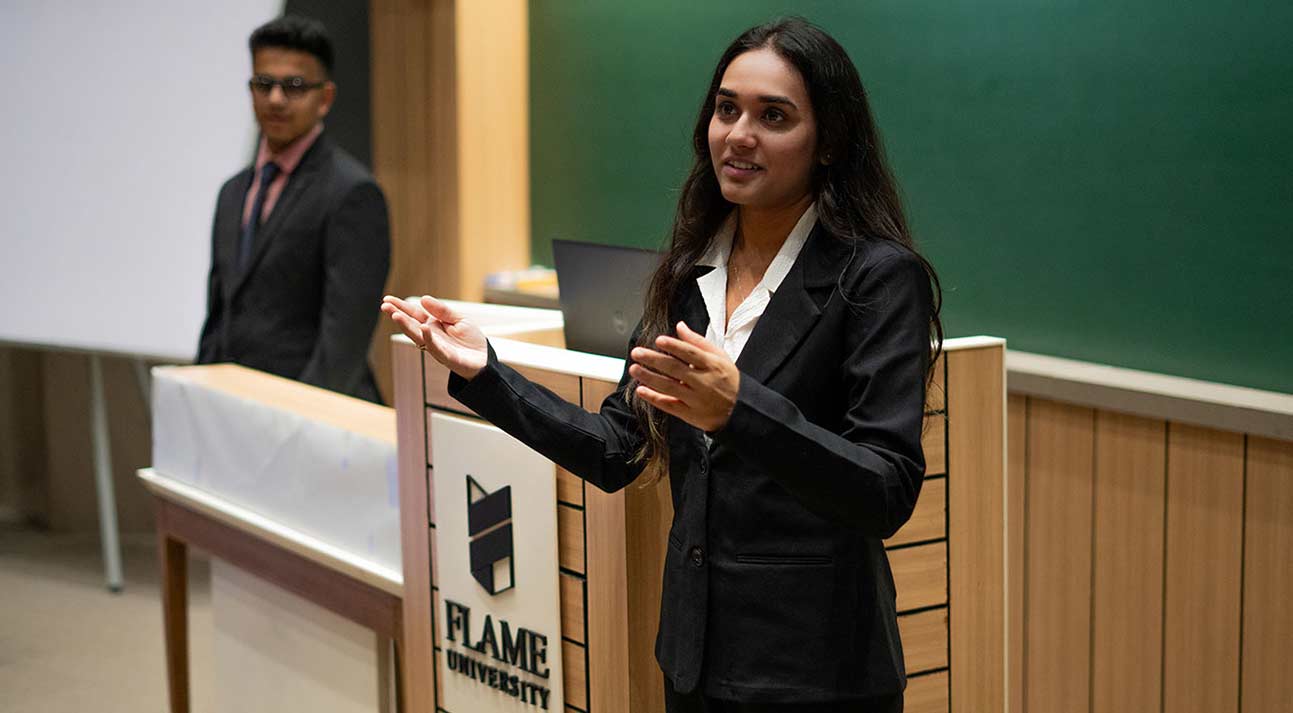 The program is designed to provide students with a comprehensive understanding of management fundamentals. It combines rigorous training with interdisciplinary learning and real-world exposure. The focus is on developing the ability to build connections, lead with clarity and confidence, and create value through both creativity and empathy. At FLAME University, every course, project, and interaction prepares graduates not only for their initial roles after completing the program but also for the successful careers they will build throughout their lives.