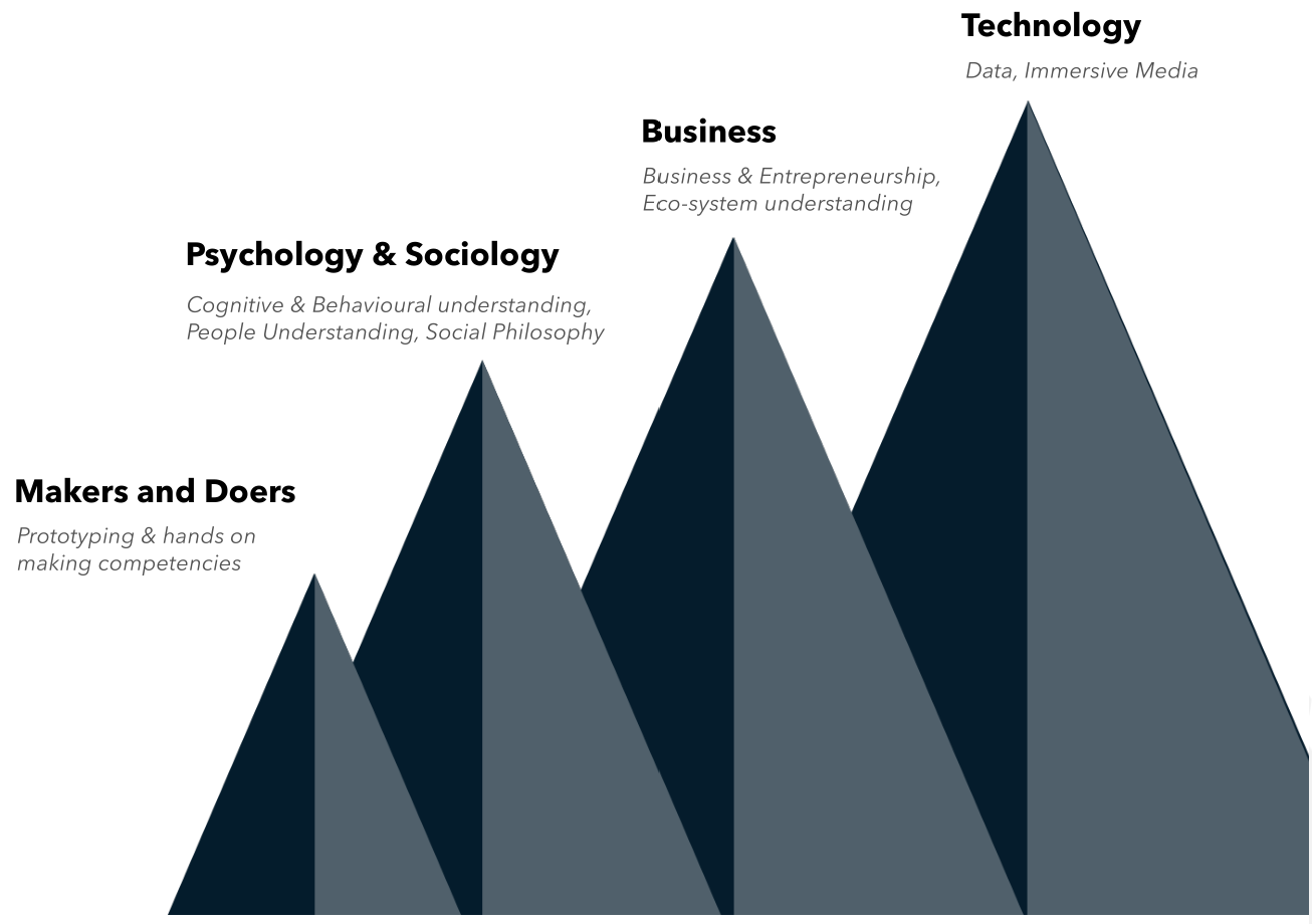 The course is an amalgamation of humanities, management, and technology that encompasses different subjects and skillsets on the basis of four design pillars, namely: