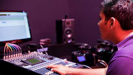 It hosts facilities for sound recording and mixing. The recording and monitoring spaces have impeccable acoustic properties isolating and diffusing sound that could otherwise interfere with the recording. It also houses a preview theatre that allows our film and television students identify opportunities to improve their film.