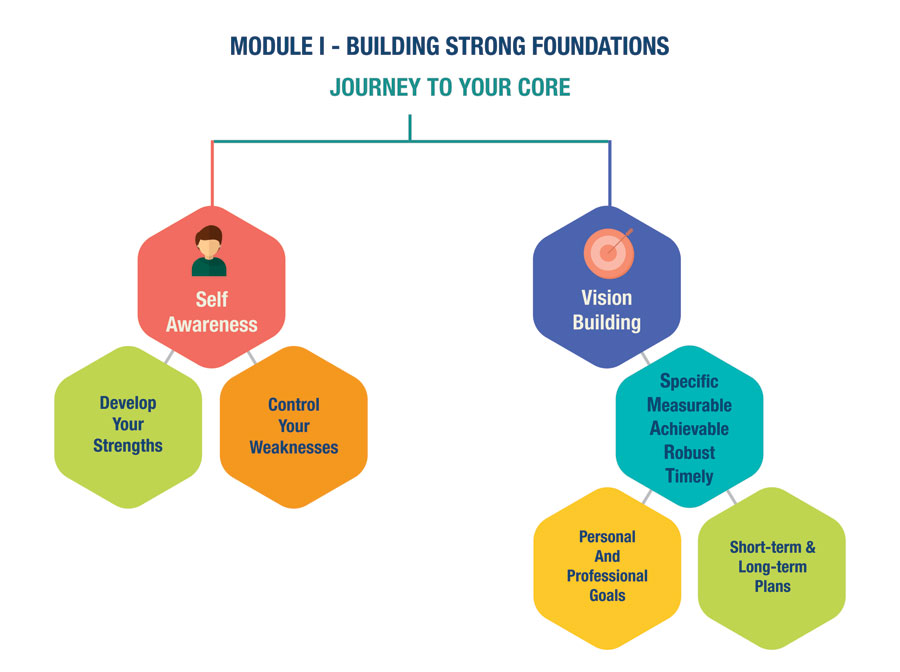 This module helps students be more self-aware of their personal strengths and weaknesses and guides them towards drafting ,”SMART”( specific , measurable, achievable and timely) personal career goals and setting up short-term and long-term plans for themselves. This is also a great module for confidence and self-esteem building for correct decision making.