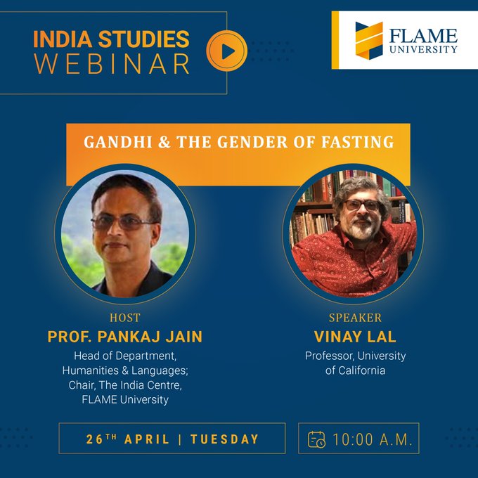 Join Prof. Vinay Lal of the UCLA in his webinar on “Gandhi and the gender of fasting”, where he discusses how Gandhi’s refusal of being bound by the general and rigid ethics, sociology, and philosophy surrounding the tradition of fasting led to radicalization and feminization of public sphere.