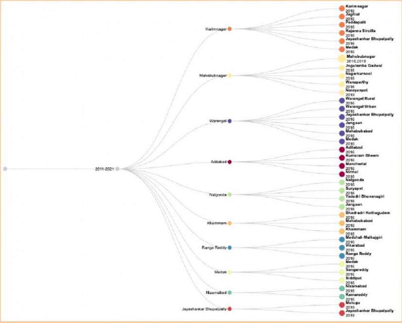 Figure 1: Illustration of District Splits in Telangana 2024-2021. Source: Analysis of media reports and publications by authors.