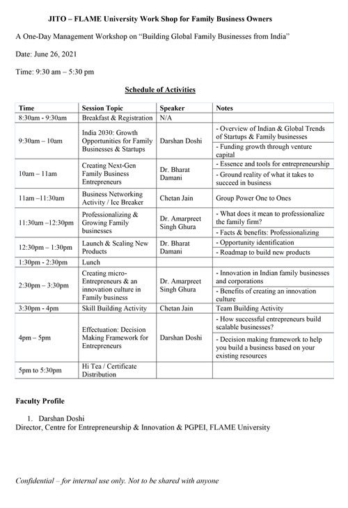 JITO – FLAME University Workshop for Family Business Owners