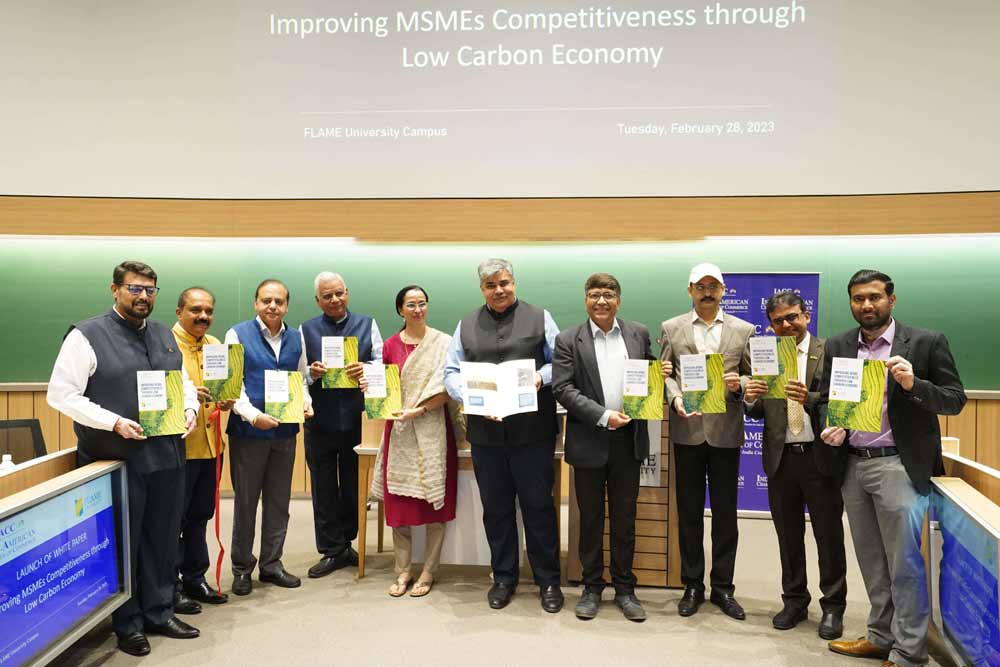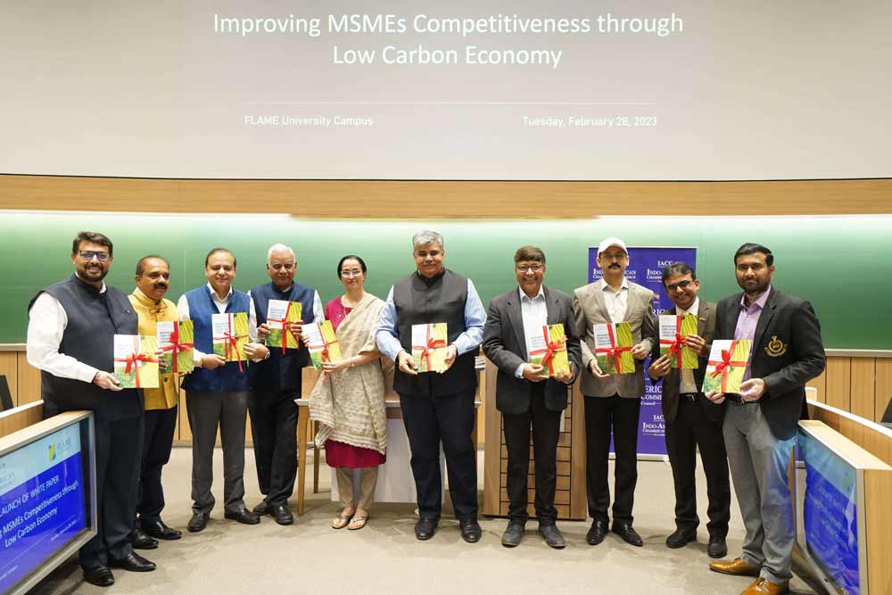The success of the roundtable was further manifested in the joint whitepaper launched by FLAME University and IACC. The whitepaper titled “Improving MSME Competitiveness Through Low-Carbon Economy” was the result of a seven-month-long collaborative effort between the two organizations and a consolidation of the insights from the successful roundtable.