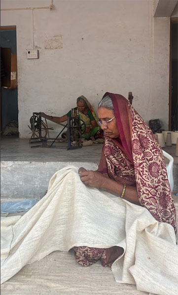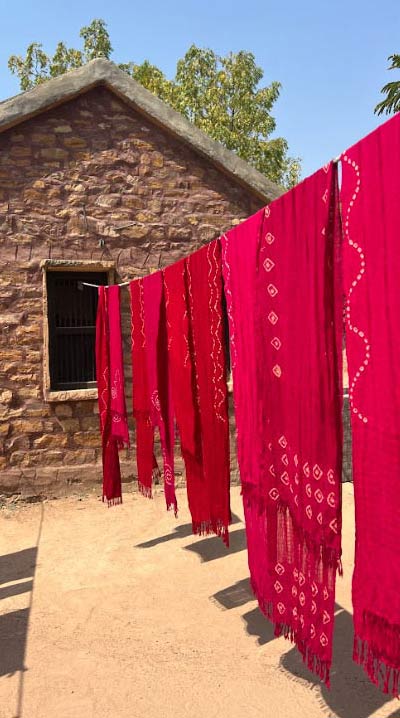 It's not just the artistry that draws them here; it's the sanctuary of home, where the air is pure and untainted by the chaos of the world beyond. Here, amidst the gentle hum of looms, where each individual is revered for their contribution, where one cherishes the autonomy of being their own master, and where the family together savors the simple joys of freshly cooked meals, rotlo, daal, and khichdi, and the warmth of spending every day together, they weave, spend time with people in the neighborhood, and believe in the importance of a good night's sleep because here the days begin as early as around 5 a.m. Every day, they pray, clean their spaces, and very peacefully begin their day. In Bhujodi, time bends to their will, allowing for breaks when the spirit falters and rest when the body fatigues. Amidst a community of kindred spirits, they find a harmonious balance between work and life—a tapestry woven with the love and laughter of a united family.