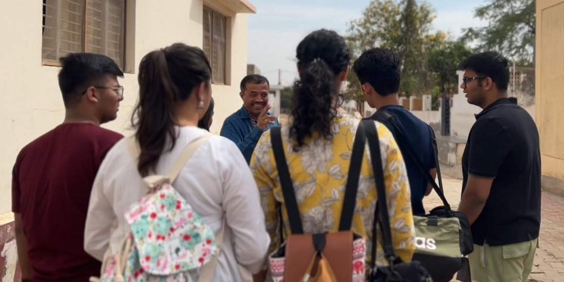 Through extensive background and secondary research, the team lays the groundwork for their exploration, which spans across several months. Dividing responsibilities among logistics, finance, and content teams ensured a holistic approach to the planning phase, with regular progress checks guided by a mentor. This preparatory stage culminated in a pre-field presentation, setting the stage for the week-long field journey. The student’s preparation for this program involves classroom sessions on the basics of research methodology: asking the right questions, framing a basic research design, thinking about surveys and questionnaires, writing structured reports, and making creative presentations.