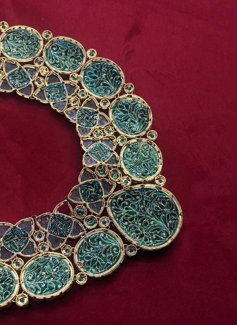 The decline in popularity of Meenakari jewelry, characterized by intricate enamel work often seen on the backside of Kundan pieces, has also impacted artisan employment. As demand for these elaborate styles decreases in favor of simpler, open-setting designs, artisans specializing in Meenakari have faced reduced job opportunities. Some jewelry houses have responded by outsourcing Meenakari work on a made-to- order basis, further limiting traditional artisan employment within their workshops. Technological advancements, notably the adoption of Computer-Aided Design (CAD), have revolutionized production processes in the Kundan industry. While CAD has streamlined manufacturing and increased production efficiency, it has not significantly reduced the need for skilled artisans. Instead, artisans have adapted to roles that complement CAD technologies, ensuring that craftsmanship and artistic integrity are preserved alongside technological advancements.