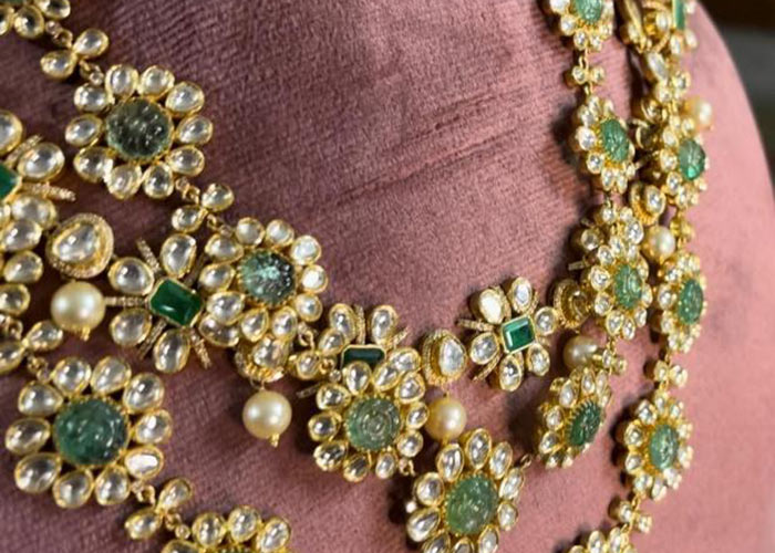 Drawing inspiration from nature's vast beauty, artisans craft pieces that embody its essence. Motifs like peacocks and floral patterns are particularly favored while designing this jewelry. Emerald, Sapphire, and Ruby are the most common gemstones used, with emeralds currently favored for their versatile green hue that complements a wide range of colors.